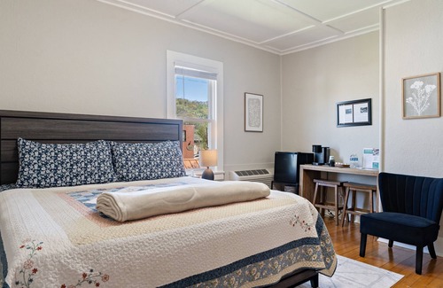 - Modern Accommodations: Newly rehabbed in 2023, each room, including the Munz Room with its king bed, mini fridge, and smart TV, combines contemporary comforts with the character of over a century-old inn.