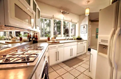 Contemporary art is displayed throughout the home, indoors and out. Please enjoy the space and its amenities; the property owner is available when assistance is needed using the grill, fireplace, sauna, etc.