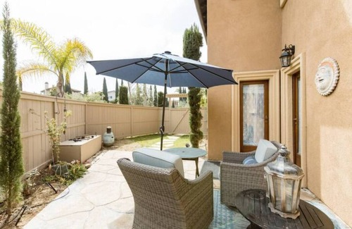 Soak up the San Diego sunshine on the enclosed patio outside this private boutique room in a classic Italian-built home. All of the doors, windows and bath vanities are imported from Italy. Quiet, safe, and convenient, this room features a private en suite bathroom and all the amenities expected from an upscale hotel. Extra-soft towels and bath robes, at least 800-count Egyptian cotton sheets, plenty of down-alternative pillows, and you will love how comfortable the Queen-size bed is! The room has a Keurig coffee maker and pods, and a mini-fridge. It's about 20 minutes to the beach, Del Mar, and La Jolla. Downtown is easily accessible along with the zoo, wild animal park, and Sea World.