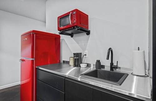 Welcome to our romantic, adults-only resort in Royal. Our cozy retreat offers a comfortable queen bed in the bedroom, a modern bathroom with a shower, and a charming living room with a queen sofa bed for additional comfort. Each home is stocked with everything you’ll need for a comfortable stay (just bring your food and drinks!). We provide high-quality shampoo, conditioner, all the essentials, pool towels, linens, sunscreen, and cozy robes. The only thing we can’t do is dry your swimsuits!