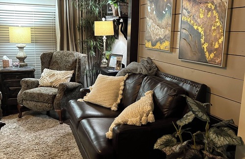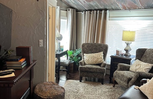 RELAX - COME ENJOY Texas hospitality at its best. THE Bow-wood suite is a romantic space, in an old 1927 remodeled ‘catalog’ Bungalow (we think a Sears Roebuck)with king, comfortable bed, with a smart TV in bedroom also. In sitting area, there is a Fireplace, recliner, smart TV, and makeup area. Large private bathroom with spa like shower unit. Included for our guests to enjoy are continental breakfast fixings, candies and miscellaneous snacks/goodies. Plus, washer/dryer available in ‘common area’, plus extra 1/2 bath, kitchenette with full size refrigerator and a comfy living room area for our guest to enjoy (particularly if they have guests, they won’t have to visit in their suite!). Old fashioned front porch seating for your morning coffee or maybe a nice glass of wine in the evening, or if you prefer - a gazebo in the back courtyard area to enjoy. We are located near downtown, so within walking distance to restruants, drug store, multiple churches, breweries, etc.