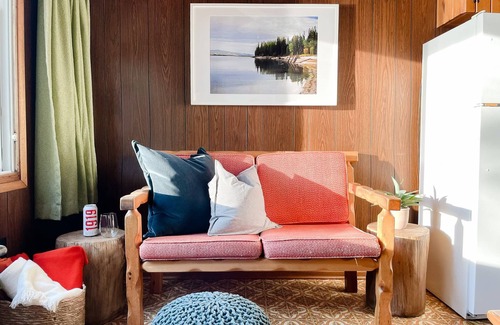 If you wanted to get any closer to the water, you would have to rent a house boat! This cabin is 560 sq ft and barely a stones throw from the beach with views from the screened in porch that will keep you entertained for hours. Other than a few throw pillows here and there, the rest of the furnishings are original to the 70's which was when this cabin was built. Gather around the dining table for dinner, board games or an evening nightcap. The kitchen has all the necessary amenities like a fridge, freezer, stove, french press, kettle, toaster and basic cookware. There's both a charcoal grill and a propane BBQ.
