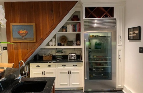 -Kitchen has new granite countertops, Kohler stainless steel farmhouse sink with garbage disposal, new electric range with an induction cooktop, new microwave, dishwasher, Keurig coffee maker, pots, pans, blender, toaster, and extensive serviceware for 6 guests.
