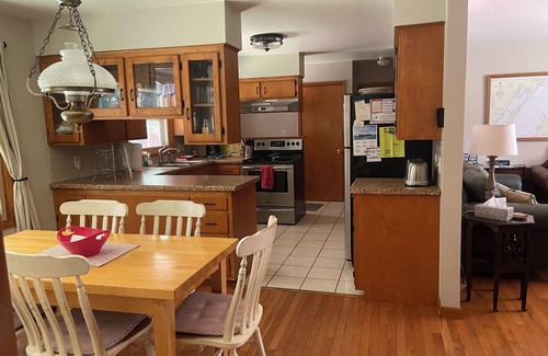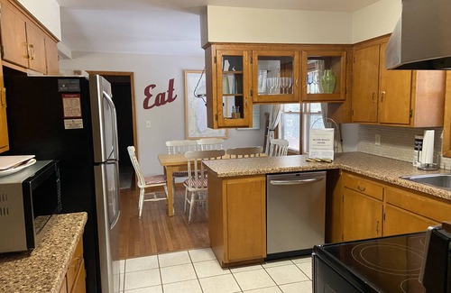 The full kitchen is updated and well-equipped to prepare any meals to be served in the separate dining area. We have a CHARCOAL grill for outside use.