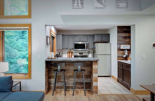 Our condo is a harmonious blend of luxury and comfort. The interior boasts a fully-equipped kitchen, ideal for culinary enthusiasts. The living room is designed to be a cozy gathering space, complete with HD TVs and high-speed Wi-Fi, ensuring entertainment and connectivity throughout your stay. Each bedroom is a haven of comfort with plush bedding, and the inclusion of a fireplace adds a warm ambiance perfect for those chilly evenings.
