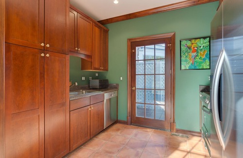 This luxurious annex has its own private entrance and apartment-feel despite being attached to a main house. The large primary bedroom has stunning furnishings with a KING size bed, a sofa to enjoy the mountain views, a ceiling fan, a walk-in closet, and French doors opening to a private deck. The primary bathroom is finished in travertine marble and has a walk-in shower. The SINGLE bedroom and second bathroom are perfect for a child or an adult to accompany you. The full kitchen also leads to the deck where there is an outdoor dining table. Enjoy the scenic ride and unwind when you arrive. Amenities include A/C, TV, Satellite, DVD Player, Wireless Internet, Private Deck, Gardens, Washer/Dryer.