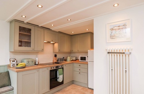 Amenities: Gas central heating. AGA, electric oven and hob, microwave, fridge/freezer, washing machine, dishwasher. Freeview TV with Netflix and Disney+, DVD Player, WIFI and Bluetooth speakers. Fuel, power, and starter pack for woodburning stove inc. in rent. Bed linen and towels inc. in rent. Travel cot, highchair and stairgate available. Beach trolley available. Roadside parking, on a first come, first serve basis. Rear patio with furniture and outhouse with lockable bike storage. BBQ. Two well-behaved dogs welcome, down stairs only. Sorry, no smoking or vaping. Shop and pub 0.1 miles, beach 1 mile. Note: The washing machine is located in the outhouse. Note: Check-in from 4pm, check-out by 10am.