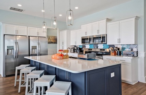 - Modern Gourmet Kitchen: The fully equipped kitchen features stainless-steel appliances, quartz countertops, and an island breakfast bar—perfect for catering your wedding festivities or post-wedding brunches.