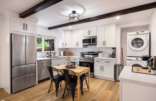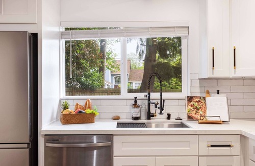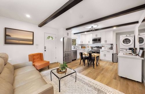 The ground-floor unit features high-end finishes, abundant natural light, and new appliances - perfect for travelers of all ages (no stairs).