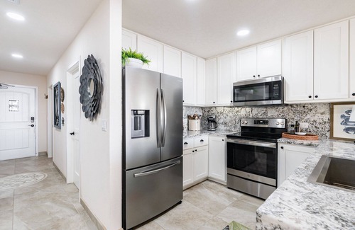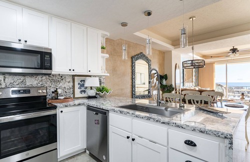 Welcome to C31007. 10th floor complete with filtered drinking water and ice. This 2.5 bedroom 2 bath condominium can comfortably accommodate up to 11 guests. The condo features a King-size bed in the master bedroom, 2 full beds in the second room, and a Twin+Full Bunk Bed in the 3rd Bedroom + 2 single mattress beds. TV's in all rooms. The master bedroom and living room have access to the balcony. Large separate walk-in laundry room with full-size laundry facilities. The kitchen is fully equipped with modern appliances and granite countertops. Fantastic views from the 10th floor of this coastal themed condo.