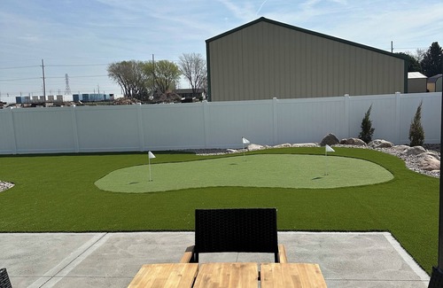 Welcome to our brand new, family-friendly 3-bedroom, 2-bathroom home! This modern retreat is perfect for your next getaway, offering a cozy, stylish atmosphere for all. For entertainment, head to the game room, where everyone can enjoy hours of friendly competition. The backyard is a true highlight— including a 3-hole putting green, outdoor seating for family meals, and relaxation. This home is the perfect blend of modern amenities and family fun. You're sure to create lasting memories here! Inside, the open-concept living area is filled with natural light, offering a spacious and inviting atmosphere. The comfortable living room features plush seating, perfect for movie nights or unwinding after a day of adventures. The sleek, fully-equipped kitchen is ideal for preparing meals, with modern appliances, plenty of counter space, and all the essentials you need to make meals. Enjoy eating together at the spacious dining table or take a quick snack at the breakfast bar. The three bedrooms are thoughtfully designed to cater to all your needs. The master bedroom features a cozy king bed and ample closet space, while the other two bedrooms are equally inviting with comfy beds and playful touches perfect for kids or extra guests. Both bathrooms are spacious and modern, making it easy for everyone to freshen up and feel at home. Our property is located 1 mile from Fonner Park!