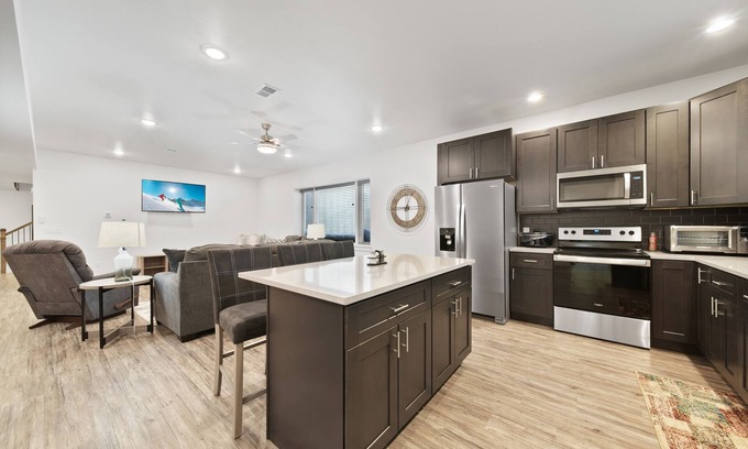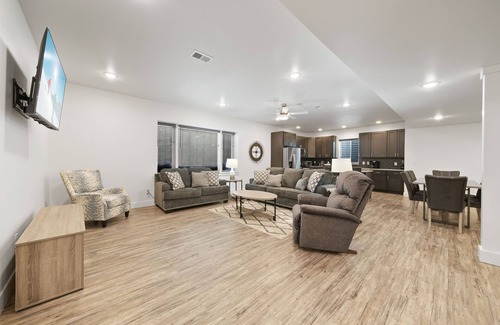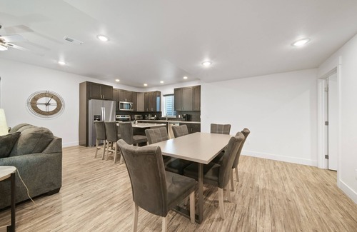 Built in 2022, this basement suite is bright and cozy, with all new furnishings. With 3 bedrooms and 2 full bathrooms, there is plenty of room for a larger group. The kitchen is fully equipped with everything you would need. Located on private property, this suite is below the owner's family. Hot tub available upon request.