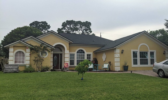 Your home away from home, quiet, safe neighborhood with relaxing lake view great for bird watching from your room or our tree swing! Take a nice walk around the lake while you soak in some of that Florida sunshine!