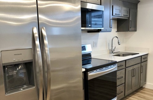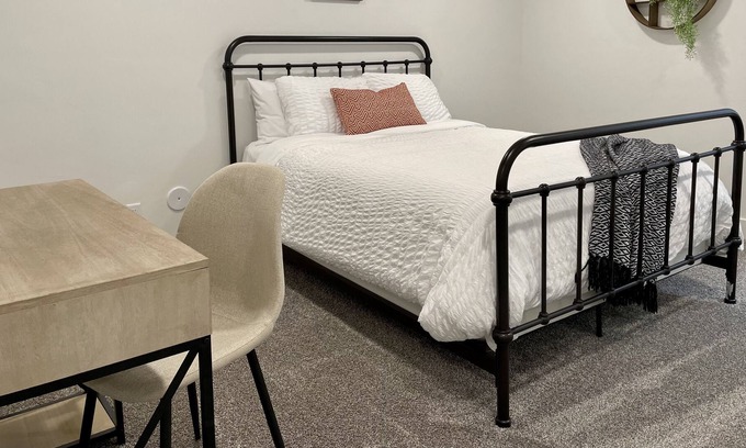 Enjoy this brand new 2 bedroom 1 bathroom basement apartment with a spacious kitchen/dining and living room area. You will get some good zzzzz’s on the comfortable, pillow top, Queen sized mattresses. You can make yummy meals in the kitchen that features a full size induction range and fridge. Close the door and enjoy some quiet work time in the private work space. Relax and take a bubble bath in the oversized soaker tub. Laugh to your favorite movie on the 75 inch TV! And the sofa even opens up to a queen sized bed so the whole family can come and get some much needed time together. The basement apartment has a separate entrance and is completely private from the rest of the home. Behind the home is a new park with a large grass area and playground to enjoy. You will be close to Logan, lakes, and mountains, so come enjoy beautiful Cache Valley!
