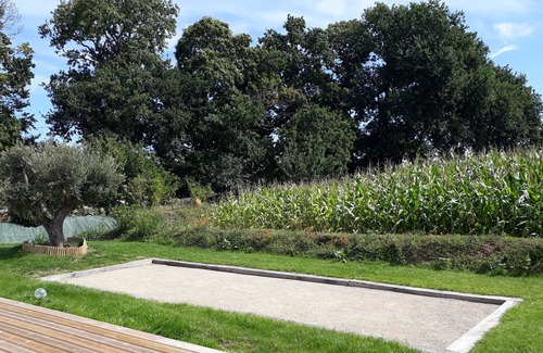 Property 1200 m2 ideal for a stay in couple or family: swimming pool upscale, private secure, heated with swimming against the current, treated with bromine (so closer to the PH of the skin), wooden terrace 70m2, petanque, beautiful structure for children's games (Wickey - Storm Flyer), table tennis and possibility of bicycles (surcharge).