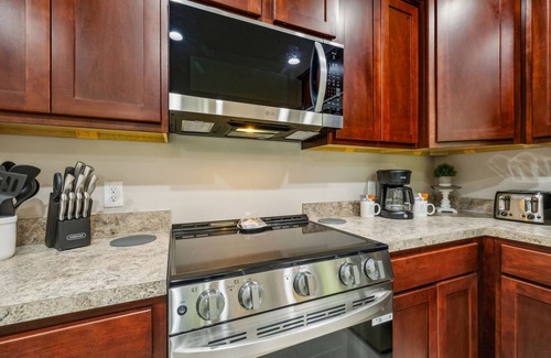 This townhome has a great layout with the Owner's Suite with King Size Bed and En-Suite Bathroom on the main level. Nice living area with SMART TV open kitchen and living area with a pub top table. Also a 1/2 bath on the main level. Upstairs offers a bonus room - with SMART TV and 2 more bedrooms and guest bathroom. There is a washer/dryer on the second floor. This is an end unit.