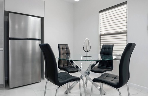 • Kitchen area is all well equipped with a dining table and a brand new air fryer available.