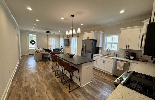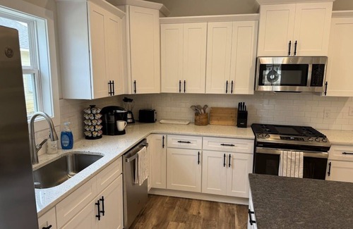 This newly constructed Gameday home is located less than 3 miles from the Mississippi State Campus. This new neighborhood is quiet with mostly weekend visitors. The large living room has a pull-out sofa, and each of the three bedrooms has a large bed (2 King, 1 Queen) with premium mattresses. Traveling with a baby- the master bedroom has a huge walk in closet that is quiet/dark for setting up a crib. Cook comfortably in our fully stocked kitchen featuring premium appliances. We have four large TVs for watching the Dawgs and a great outdoor area for grilling and listening to Jim Ellis postgame! Let us make your Starkville stay an easy one!
