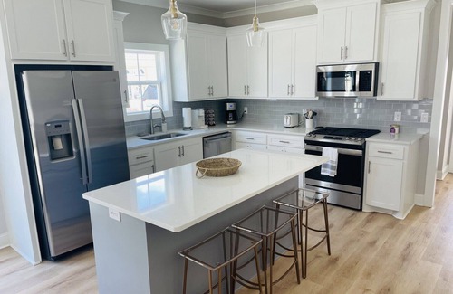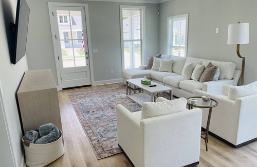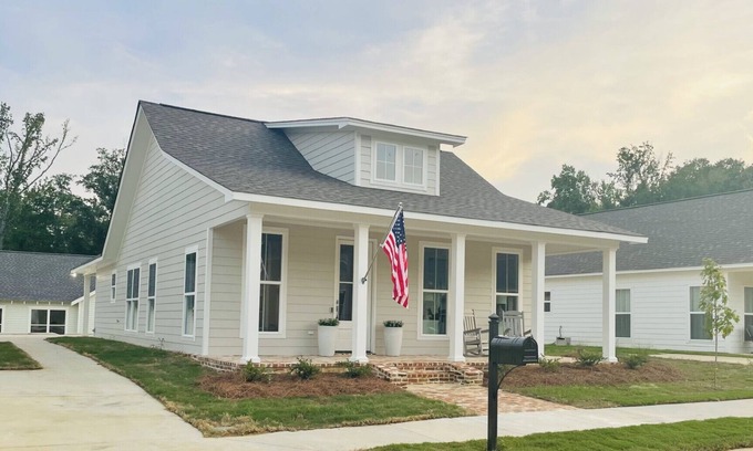 This brand new house is the perfect home base for your trip to Starkville. With 3 bedrooms, including 1 king bed and 2 queen beds, our welcoming property provides a fabulous space for guests to relax and unwind. You'll find all the necessary amenities such as a fully stocked kitchen, heating/AC, WiFi, washer/dryer, and huge living room flat screen TV to ensure you have the perfect stay in Starkville. Close to campus, the Cotton District and downtown, you'll be able to enjoy all that Starkville has to offer when you stay at our place.