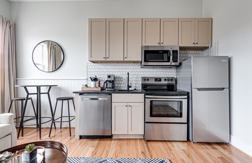 This cozy studio is on the second floor of a completely renovated building (Eileen) dating back to the 1900's. The building's first floor features a yoga studio & a juice bar. Upon entering the building on the North 24th street entrance, you'll see right away that during renovation we spared no expense. Once inside the apartment, let the relaxation begin. The kitchen comes fully stocked with stainless steel cookware, the bathroom with its tiled shower would make even the Vanderbilt's jealous and the front-loading washer & dryer has several load settings for your convenience. Netflix is available on the TV, so you can sit back and chill as your day winds down.