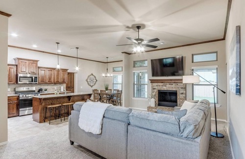 Enjoy the open floor concept and brand new flooring throughout. Relax on the comfortable sectional in the living room, watching your favorite shows on the large smart TV mounted over the gas fireplace.