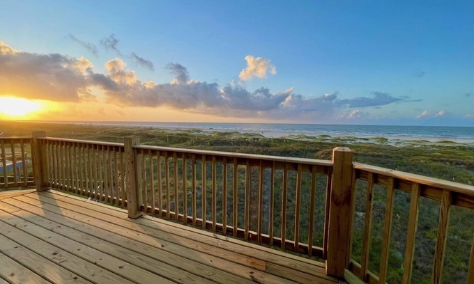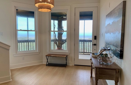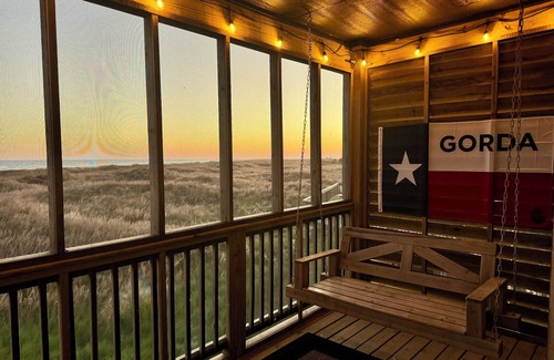 New, uniquely designed home perched right on the dunes of Matagorda Beach with unobstructed 180-degree views of the Gulf. Large entertaining space on ground level with outdoor shower, plus a spacious screened lower deck & open upper deck, both with panoramic ocean views. Inside on the first level you'll find 3 bedrooms and 2 baths and upstairs an open kitchen/living with 9' island, another half bath, fireplace, 65" streaming TV and, best of all, large picture windows all around showcasing one of the best views on the Texas coast.