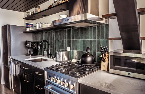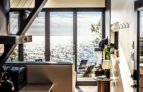 The second floor boasts a stargazing loft area with two large skylights above the king sized bed. Note that the steps to the loft are steep.