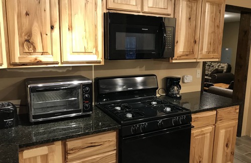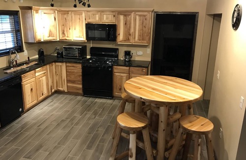 The Lodge is approximately 3000 square feet of living space, decorated with a modern rustic theme. All furniture, cookware, beds/bedding linens are all brand new. Also the lodge features over 2000 sq feet of patio and deck, to sit out side and enjoy the peaceful afternoons watching the wildlife of the area, or sitting out and taking in the "Big Sky" at night.