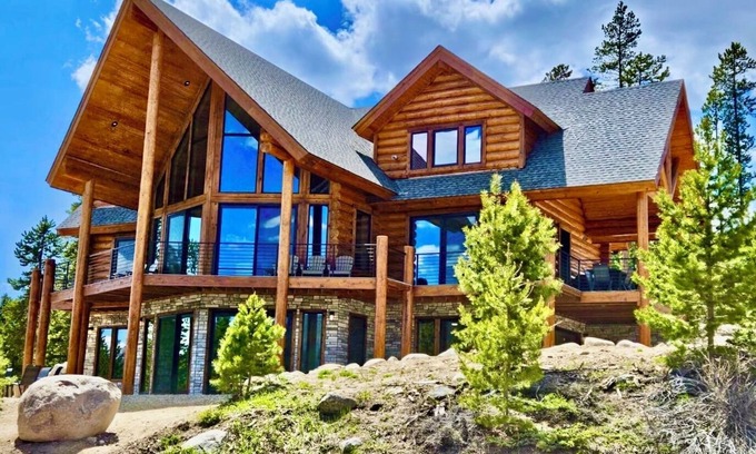 - Luxury lakefront log home w/dock and boats bordering RMNP