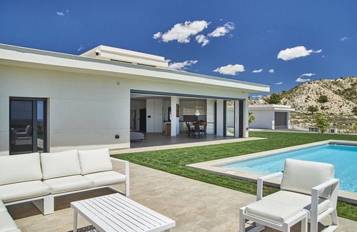 The most modern villa in the Costa Blanca has luxurious finishes and possesses stunning panoramic views of Alicante city, the countryside and the sea. Enjoy this secluded oasis of peace in a central location - surrounded by +4,000 m2 of lushly planted garden.