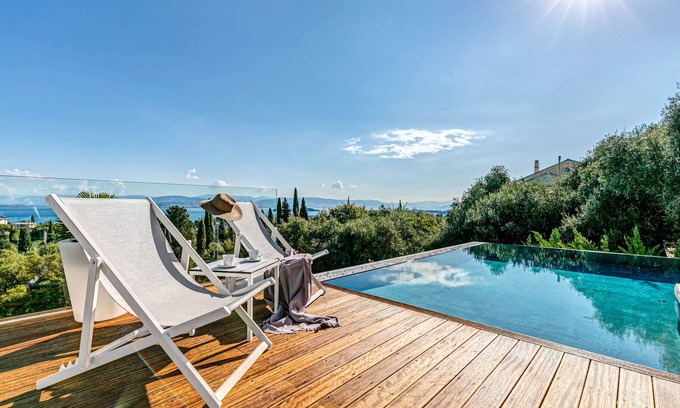 This brand-new 4-bedroom villa offers modern luxury in a picturesque Corfu setting. You'll love the stylish design, the infinity pool, and the roomy patio with the incredible sea views that stretch from Corfu Bay to the historic town's fortresses. The villa is thoughtfully furnished with high-quality appliances and stylish furniture for your comfort and convenience