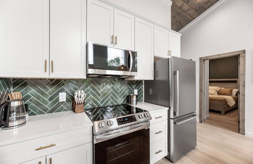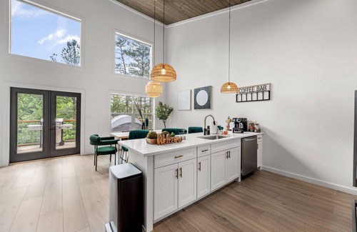 Discover the enchanting Brand New Modern Cabin in Gatlinburg - Peaceful setting in the woods, an idyllic retreat that provides a romantic backdrop for your dream wedding. Nestled among the tranquil trees, this luxurious cabin offers a serene atmosphere that sets the stage for unforgettable moments. With its designer furnishings and exquisite decor, you and your guests will enjoy an elegant stay while celebrating your special day surrounded by nature's beauty.