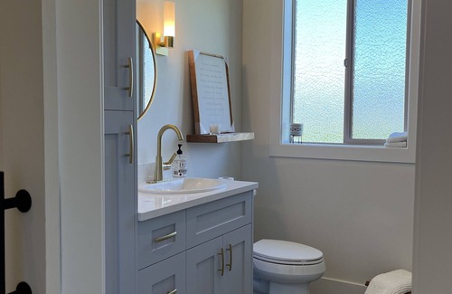 Brand new, 850 sq. ft. modern farmhouse-style home nestled among the cherry trees and vineyard. This home has concrete heated floors throughout, custom built cabinetry, high-end stainless steel appliances, and beautiful views of Lake Chelan, the surrounding mountains, and vineyard from every window. Sleep in and then enjoy a private outdoor sitting area with your morning French-Press coffee. This suite also includes a separate office for working (if you must).