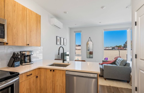 This brand new studio apartment in Philadelphia's trendy West Germantown neighborhood is perfect for your escape to the city. Ideal for traveling nurses, digital nomads, and professionals on temporary assignments. This small space comfortably accommodates two people and well-behaved pets. Enjoy amenities like the fitness center, common study area, resident lounge, tenant bicycle storage, pet area, and roof deck with green roof. On-site parking is available. Whether you're hiking the Wissahickon or exploring Center City, this phenomenal new property is the ideal home base for your Philadelphia getaway. Enjoy your time in Philadelphia at our beautiful studio.