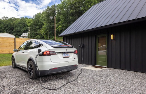 Electric cars can easily plug in to the electric car charger located at the main entrance.