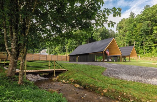 Welcome to your BRAND NEW cozy mountain getaway in the heart of Western North Carolina! Nestled creekside just 4 miles from charming downtown Waynesville this unique property features a stylish barndominium that sleeps up to 6 people.