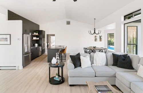 The home is tucked back on a dead-end road and backs up to incredible, truly breathtaking views of Palisade. You can soak in sunrises and sunsets from the backyard while hanging by the pool, grilling or just sipping on some wine. The home was remodeled from top to bottom and the modern interior is only second to the views out the back windows. Blackout shades are provided in the bedrooms but you likely won't want to miss out on the views in the morning! The center of the home has an open kitchen, dining and den area making it a great gathering space for all guests.