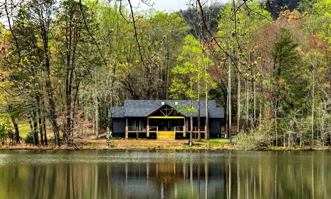BRAND NEW Perfect Getaway with Lake Views, Full Kitchen and Outdoor Fire Pit | House in Mills River
