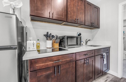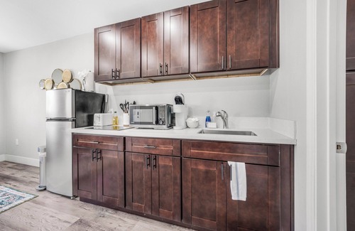This modern El Cajon apartment is the perfect place to stay for exploring all the exciting attractions San Diego has to offer! Strategically located close to SDSU and Sharp Grossmont Hospital and just a quick 20-minute drive to the beach and downtown, it provides easy access to the city's main destinations. This apartment boasts a private bedroom with a plush queen bed and one bathroom—as well as plenty of space to relax and socialize. There is a queen sized pull out sofa in the living room as well! There is plenty of free street parking and even a personal parking spot included with the rental. Fully stocked with kitchenware and basic cookware and dining essentials, the kitchen is perfect for those who love to whip up a meal. Towels, linens, and all the basic bathroom amenities are included for a worry-free stay. Don't pass by this golden opportunity to experience the best San Diego has to offer! *Note: There is no oven in the home.*