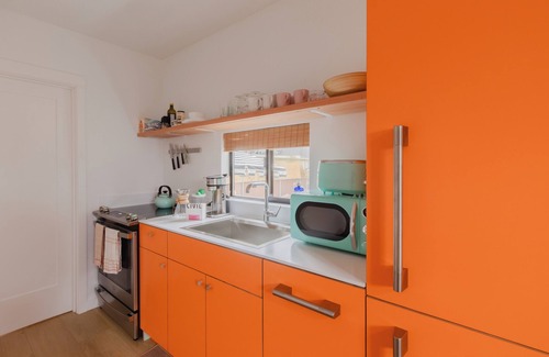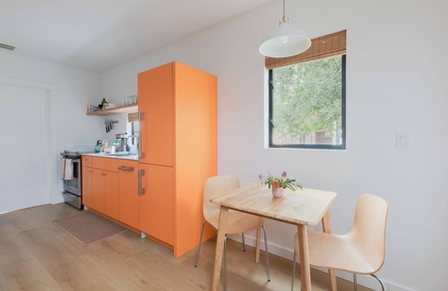 Enjoy this architecturally designed tiny home! Includes a full kitchen, washer/dryer, king-size bed, pull-out sofa, OLED smart TV, workspace, and private outdoor garden/dining space. Located in vibrant Highland Park, just a short drive from amenities on Figueroa and York. Outdoor activities in South Pasadena include horseback riding, tennis, racquetball, the Rose Bowl, and the Arroyo hiking trail. Close to freeways and transit, the location is ideal for experiencing both urban LA and the natural beauty of NE LA. The home features a private workspace complete with desk, desk lamp and desk chair. The unit also features a dedicated private high speed WIFI network, and wireless/wired charging ports in both the desk area and bedside. All windows have shades for privacy (blackout shades in the bedroom) and the space is soundproof and quiet. All of the appliances, finishes and fixtures are brand-new and high quality. The home is designed with productivity, privacy, and safety in mind.