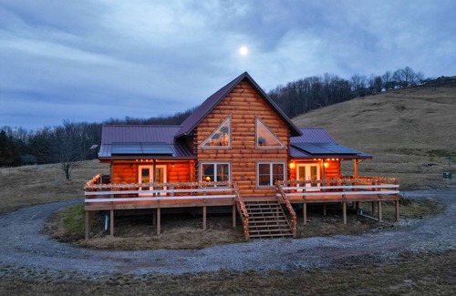 BRAND NEW solar powered 2BR (king, qu, qu sofa bed in loft, & qu blow-up mattress) true log cabin that’s central to Timberline, Canaan Valley, Dolly Sods, Seneca Rocks, Spruce Knob, Black Water Falls, & more! Beds have luxury mattresses & sheets. Exteriorly there is a wrap around deck w/ hot tub, scenic views, & tame wildlife. Interiorly, is a real stone fireplace, live edge walls, full kitchen/dining, & fireplaces in BR’s. You can escape to peace & quiet & remain connected w/ Starlink Wifi. There are exterior cameras for security purposes. We also use these cameras to know when guests arrive and check out. If these cameras make you feel uneasy, please reach out to me as I can instruct you on how to turn them off during your stay. During winter months, it is mandatory that all guests travel in an AWD/4WD vehicle with good winter tread tires and chains for backup in high snow accumulation. The terrain to the cabin is very windy and steep.