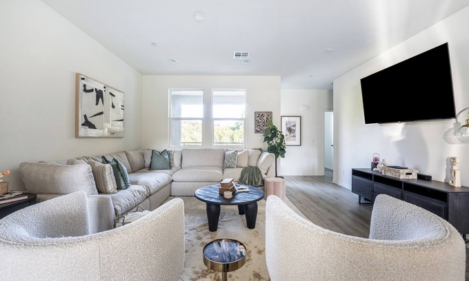 This townhome is designed with your comfort in mind. Enjoy the convenience of a full washer and dryer, high-speed Wi-Fi throughout the home, and central air conditioning for those warm California days.
