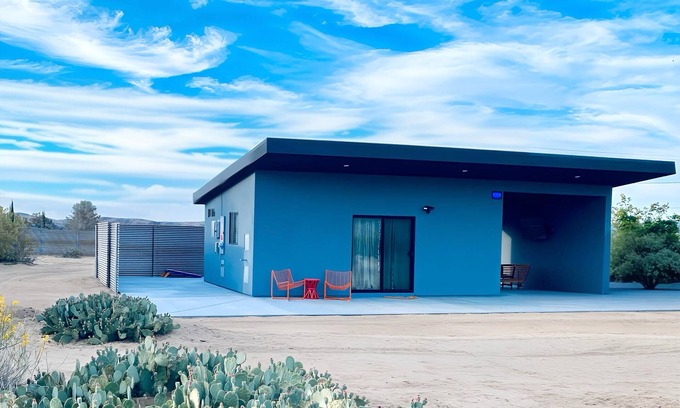 Your Joshua Tree adventure begins at this quaint studio. With 1 queen bed and 2 twin beds, this peaceful retreat is perfect for guests seeking a relaxing getaway. Midnight Sunrise is a tiny home located minutes from downtown Joshua Tree. Situated on a private half acre lot, you can view the Mojave mountains, watch breathtaking sunsets and enjoy the sparkling night skies. During the day it's a short drive into Joshua Tree National Park as well as minutes away from boutique and vintage store shopping and incredible dining options! Come relax, escape and enjoy! Dogs are welcome to enjoy our space and will be charged 100$ per stay.