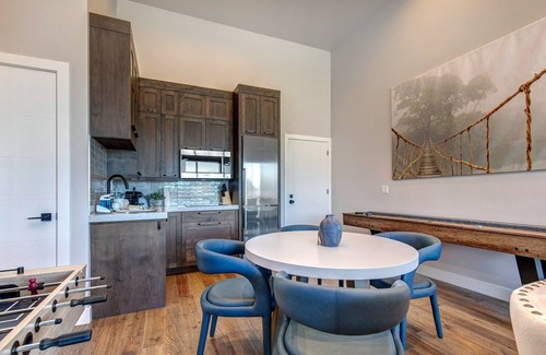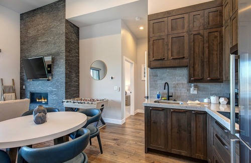 This one-bedroom, one-bathroom vacation rental accommodates up to 4 guests. The inviting living space is bathed in natural light, thanks to large windows showcasing the home's stunning surroundings. Sink into plush furnishings and cozy up by the fireplace, while streaming your favorite movie. The convenient kitchenette comes well-appointed for home cooking. Get ready to be delighted by the plethora of entertainment options. Challenge your crew to a friendly match of shuffleboard or foosball in the game room.