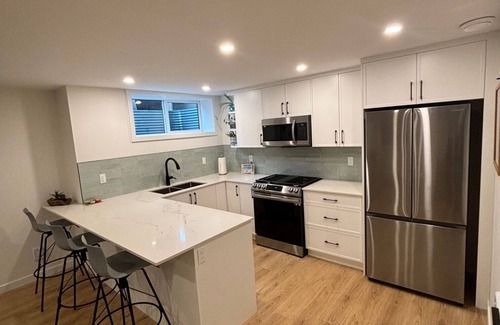 - Modern 1-bedroom self contained suite w/Full Kitchen and Air Conditioning