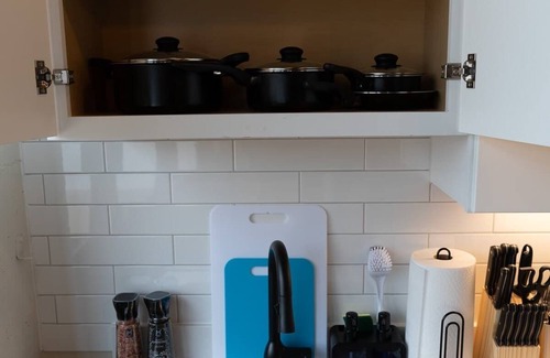 Welcome to our cozy ground-floor 1-bedroom apartment in historic Uptown Martinsville, Virginia. The space boasts a full kitchen equipped with everything you need to prepare meals during your stay. Relax in the living room with fast fiber internet and streaming TV, or unwind in the bedroom featuring a comfy queen memory foam bed and an additional streaming TV. Enjoy the convenience of free on-site parking, making it easy to explore the charming shops and eateries just steps away. This apartment offers the perfect blend of modern amenities and historic charm for a comfortable and convenient stay.