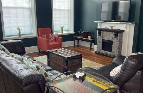 Our home is located in the historic neighborhood, Old Seminary Square, in NKY . We are conveniently located app 20minutes from CVG Airport and Cincinnati ! We are conveniently located near Cincinnati Zoo, Great American Ball Park, Cincinnati Art Museum, and History Museum , and many other venues! We are within walking distance to many shops and restaurants. The suite is the entire first floor, in our historic home! We do provide a large air mattress, if you have more than two guests. There is also a couch that guests are welcome to sleep on. We have one king size bed in the bedroom, with a door, for privacy.