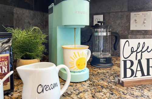 - Fully Equipped Kitchen: Enjoy all the essentials in the medium-sized kitchen, complete with granite countertops, modern appliances, and a coffee and tea bar for your morning gatherings.