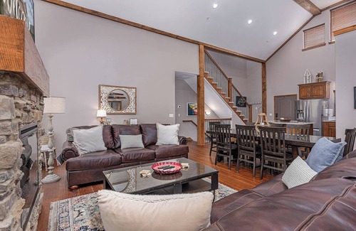 Hurry and book now! Newly added to our list of homes that only have the best amenities and custom features throughout. This large 6 bedroom lodge sleeps 18 and was truly designed and set up to accommodate large groups with multiple living areas, large custom dining table for maximum occupancy, and large rec room. This 6 Bedroom Lodge is the floor plan with much needed lower level rec room. We supply everything you'll need including linens, hand soap, shampoo and conditioner, laundry soap, and coffee. This house can be rented along with my 7 bedroom next door and will sleep 38 total!!