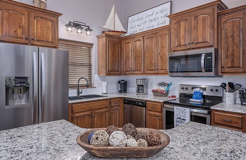 - 4 bedrooms have king beds and the two bedrooms downstairs have custom full over king bunks which can be used for kids or adults!! Downstairs rec room has one queen sleeper sofa. Guests love the custom bunk beds since it's a king on lower bunk.